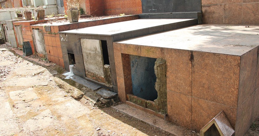 No Cemitério da Saudade, a equipe do TCMSP encontrou uma série de problemas. Entre eles estão jazigos abertos e vandalizados, lixo e entulho espalhados pelas áreas de circulação, falta de acessibilidade, ausência de segurança ou vigilância, banheiros com problemas nas portas, longas filas de espera e sacos de lixo espalhados pelos gramados.